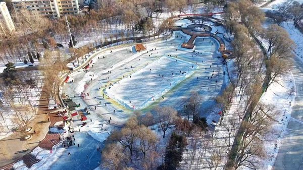 同时,充分利用辖区冰雪资源,打造“家门口”的冰雪场地。精心打造黛秀湖、木材街等10处公益冰场,总面积超过3.7万平方米。其中,黛秀湖公益冰场占地面积超8600平方米,在拓展活动空间的同时,精心划分出短道区、儿童区、冰球区、速滑区及冰尜区五大功能区域,可充分满足初学者、专业运动员及普通市民的多样化运动需求。每逢开放时段,不少居民带着孩子前来滑冰、打冰球、抽冰尜,尽享冰雪运动的欢乐。为方便外地游客,主办方还免费提供大约80副冰刀供市民游客使用,让初学者有练习空间、专业运动员有竞速场地、普通市民有休闲区域。