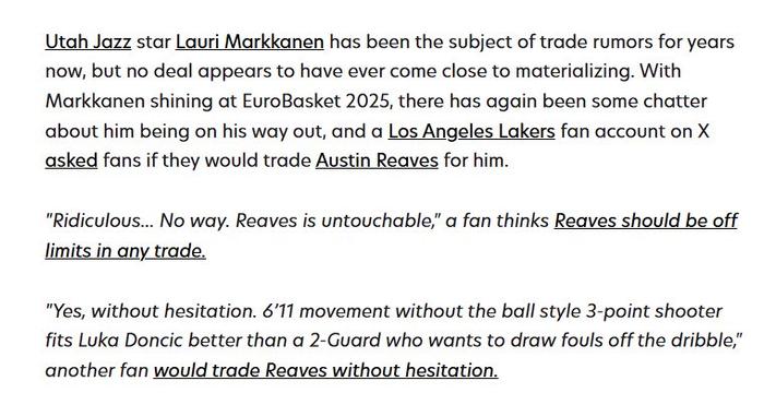 “爵士队不会接受这个提议,他们想索要更多。但如果是自己的话,会毫不犹豫的进行这笔交易。”